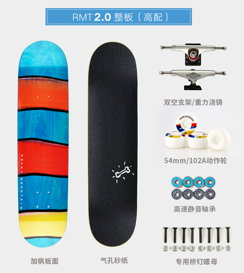 RMT成立于2011年,全称为ROKKY MOUNTAIN,是国内专注于做专业板的滑板品牌。他们一直致力于专业板的设计、研发与推广,依托母公司二十多年滑板整板及其滑板配件的生产与制造经验,目前主要有双翘板、复古板、鱼板等专业板滑板,美式设计的加枫板获得了国内外滑手和滑板爱好者的一致好评。